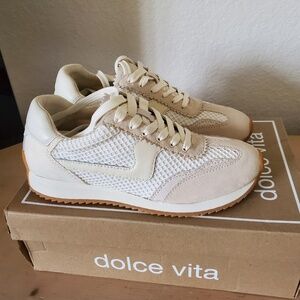 Dolce Vita White On White Net & Suede Sneakers Size 7 1/2 or 8 NEW in Box