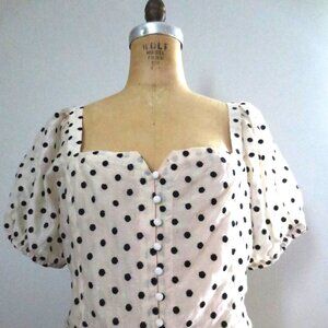 Madewell fitted sweetheart embroidered polka dot top with puffy sheer sleeves with a slight shimmer. The top is a little sheer along the front. Polka dots are embroidered on the fabric making the garment delicate. Purchased 2 years ago and never worn, simply tried on for fit. It's new without the tag which I removed.