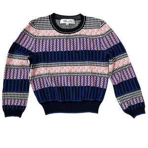 Diane Von Furstenberg Blue Pink Striped Crew Neck Sweater XS