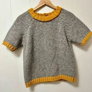 knit in spanish wool. very charming, cozy, with natural wood buttons down the back. reversible. no longer available online.