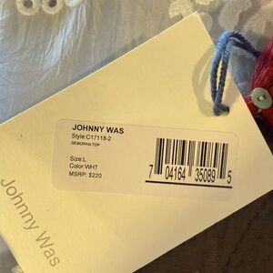 JOHNNY WAS tone on tone white oversized blouse with embroidery, L