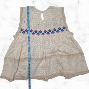 NWOT Anthropologie Let Me Be Sleeveless Embroidered Babydoll Blouse Blue Motif M