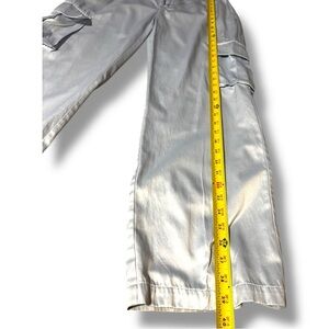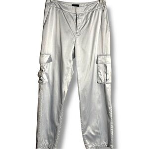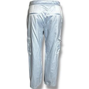 Excellent condition, little to no wear; light baby blue color satin cropped cargo pants for women, cargo pockets on either side, comfy and silky relaxed loose fit pant