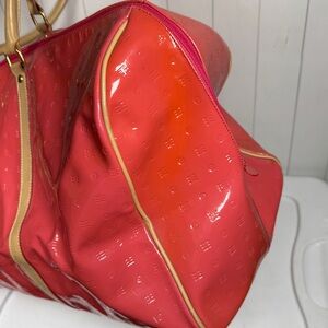 Arcadia Large Pink Embossed Patent Leather Duffle Bag Glam Preppy Lux Weekender