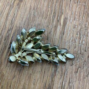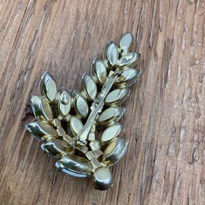 Milk Glass Vintage Marquise Shaped Stones Aurora Borealis Gold Tone Leaf Brooch
