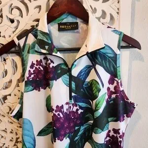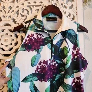 The sleeveless polo matches our Skort in same floral Graphic- worn together, they look like a dress.