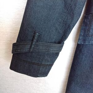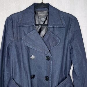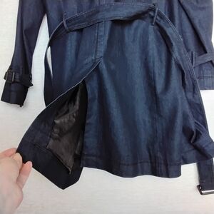 Focus 2000 vintage y2k 90s dark wash denim jean belted button up trench coat women's size 12