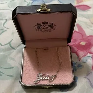Chic Juicy Couture necklace with elegant script design. Adds sophistication to any look. Very pretty! Comes in its own box.