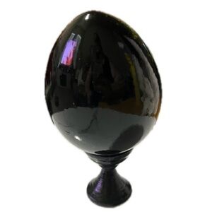 Vintage Black Russian Hand Painted Lacquer Wood Egg Church w/ Stand Signed
