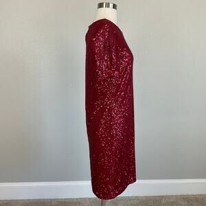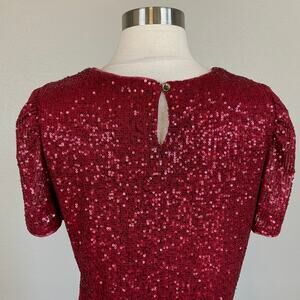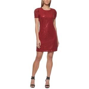 DKNY Red Sequined Knee Length Short Sleeve Shift Cocktail Dress Size 10