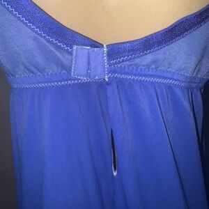 Experience the elegance of this stunning blue lace chemise, perfect for a relaxing evening.