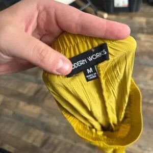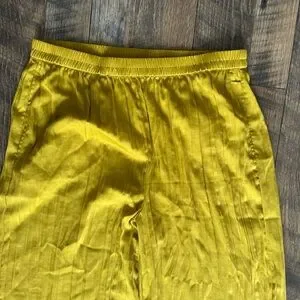 MODERN WORKS| Medium Yellow high-waisted wide-leg velvet pants #yellowpants #satinpants