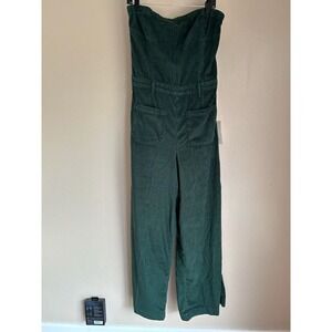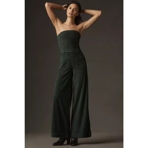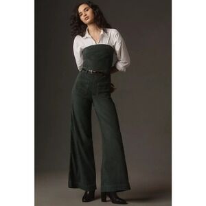 NWT Anthropologie Pilcro Skipper Corduroy Crop Wide-Leg Jumpsuit Size 16 Dark Green