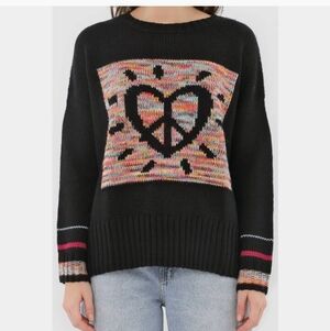Desigual sweater, black with peace sign, heart.