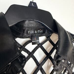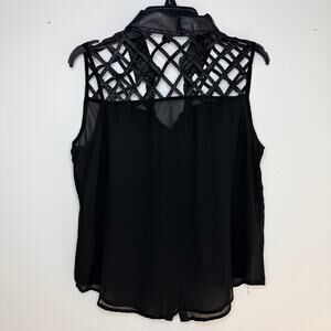 Fun & Flirt Black Sleeveless Faux Leather Button Down Top Blouse, Large, NWT