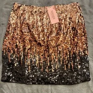 Dazzle in this Maner sequin mini skirt, featuring a stunning black and gold design. Perfect for a glamorous night out! This gorgeous skirt is NWT. Please feel free to ask questions prior to purchase. Thanks for looking! π€π§‘