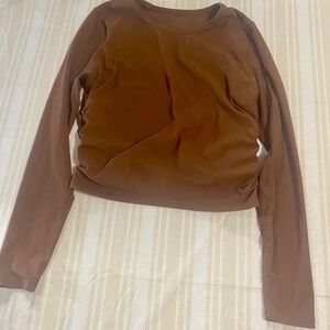 All it takes ribbed nulu long sleeve shirt with cinched sides in roasted brown . Tag is missing , but purchased in size 6 .
