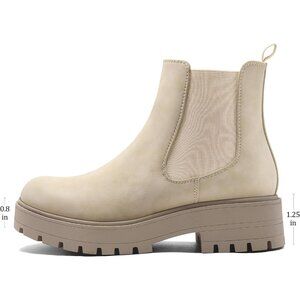 Women's Beige Chelsea Low Chunky Heel Slip On Lug Sole Elastic Ankle Booties
