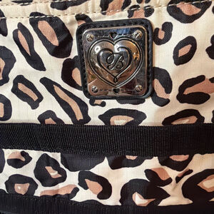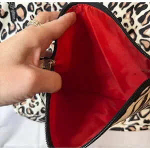 Brighton Knox extra large Catwalk tote bag and cosmetic pouch. It has a bright red interior lining with one inside pocket, two visible zippered compartments and one large hidden zippered pocket on the front. Main compartment has a locking zipper. It is in excellent clean like new condition.