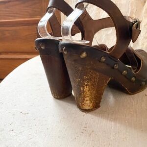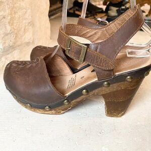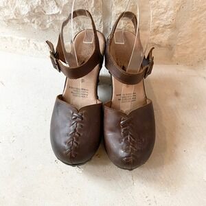 Free People Jeffrey Campbell Brown Leather Clog Platform Heel Sandals Women 8