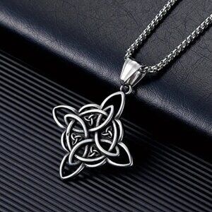 Celtic Witch Knot Pendant Necklace with Heavy Chain NWT