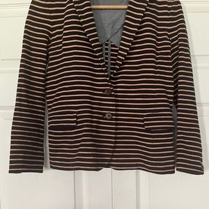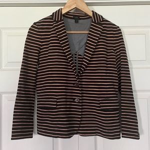 {J. Crew} Maritime Ponte Knit Striped Blazer in Black & Tan - Women's XS