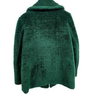 French Connection Medium Green Faux Fur Teddy Coat Collared Emerald Warm Cozy