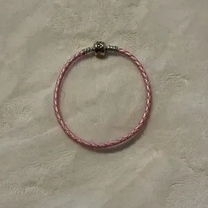 Retired style pink Pandora leather bracelet. 7.5 inches