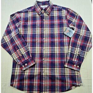 Stay warm and work-ready in this RidgeCut Tough Wear Heavy Flannel Shirt, size Men’s Medium, New With Tags. Known for durability and rugged performance, this shirt features a soft brushed heavyweight flannel with a classic red, navy, tan & cream plaid pattern. Long sleeves, button cuffs, and a clean button-down collar make it perfect for work, outdoors, or everyday casual wear.