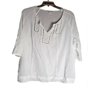 Coldwater Creek White Cotton Blouse with Crochet Trim Size 1X (18)