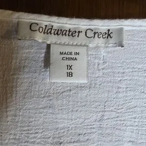 Coldwater Creek, plus size blouse, white cotton top, boho blouse, crochet lace trim, size 1X, workwear, casual chic
