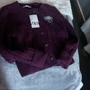 Zara Purple Cable Knit Sweater