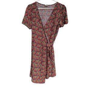 Silk & Salt Surplice Wrap Maroon Midi Dress Sz M