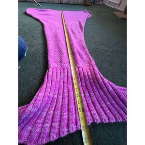 This handmade mermaid tail blanket is in excellent pre-owned condition. It shows no flaws, no stains, no loose stitches, and no visible signs of wear. The knit is strong and well-p