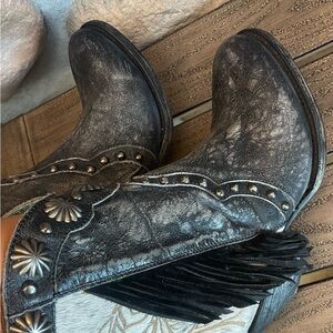 CORRAL Cowgirl Ankle Boots FRINGE Studs COW HAIR ON 7