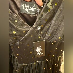 BNWT Hell Bunny Infinty 50s black dress with gold star and moon sequin overlay in size 2XL.