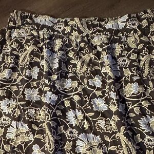 LOFT Skirt Womens L Linen Blend Pockets Pull On Elastic Floral Black Blue Green