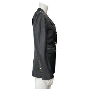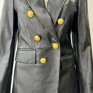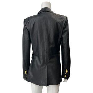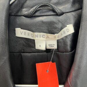 $1395 Veronica Beard Black Leather Gaya Double Breasted Dickey Jacket size 6