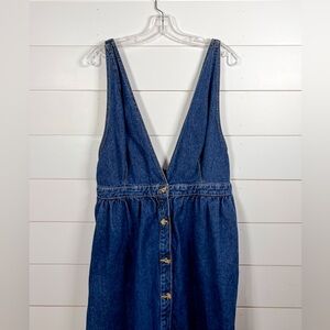 Urban Outfitters Danny Plunging Button Down Denim Overall Dress, EUC, Size XL