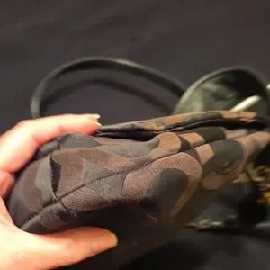 Elegant Coach Kirsten shoulder bag with a bold black and brown pattern. Features a stylish silver accent closure...some scratches. Ideal for versatile wear.