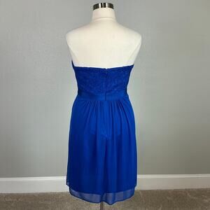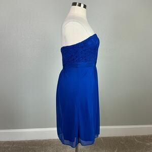 Adrianna Papell Strapless Lace Chiffon Mini Sheath Cocktail Dress Blue Size 14