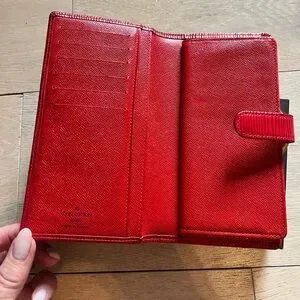 Gorgeous wallet. Really great condition. Watch video. The structure is so nice. Very clean. My opinion - very giftable. Comes in unbranded box. Beautiful color - bright Castilian red was made between 1987-2004 🤩