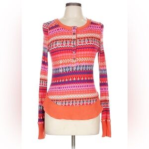 Free People FP Movement Colorful Fair Isle Knit Henley Top
