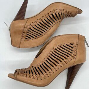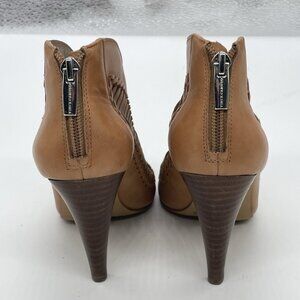 Vince Camuto Acha Cutout Peep Toe Zip Back Heels Womens Tan Leather Shoes 6 36