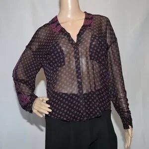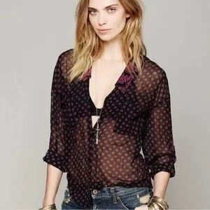 Free People Easy Rider Floral Print Sheer Button-Down Blouse XS