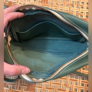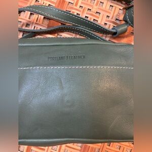 Beautiful Portland Leather Large Camera Bag. Hard to find green color. This page is pre-loved and shoes some signs of wear including some dents in leather. No damage. Interior is clean and in nice shape! Cute and convenient bag that is the perfect size for all of your essentials.