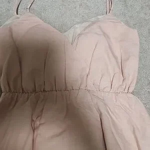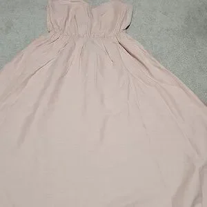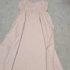 Chic strapless dress in a soft blush hue. Features a gathered waist for a flattering fit. Ideal for casual outings or special events. with pocket on side. new without tag