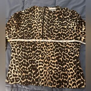 GANNI Silk - Blend Animal Print Button Blouse - Size 40 (US 10)