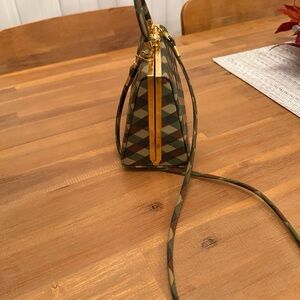 Cawen's Tan, Brown & Hunter Vintage Look Gold Handle Bag Like New