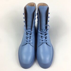 Elevate your wardrobe with these elegant STEWART WEITZMAN MCKENZEE AUTHENTIC GENUINE SMOOTH STUNNING LIGHT BLUE LEATHER lace-up boots. SIZE 7. 5 B Width: MEDIUM